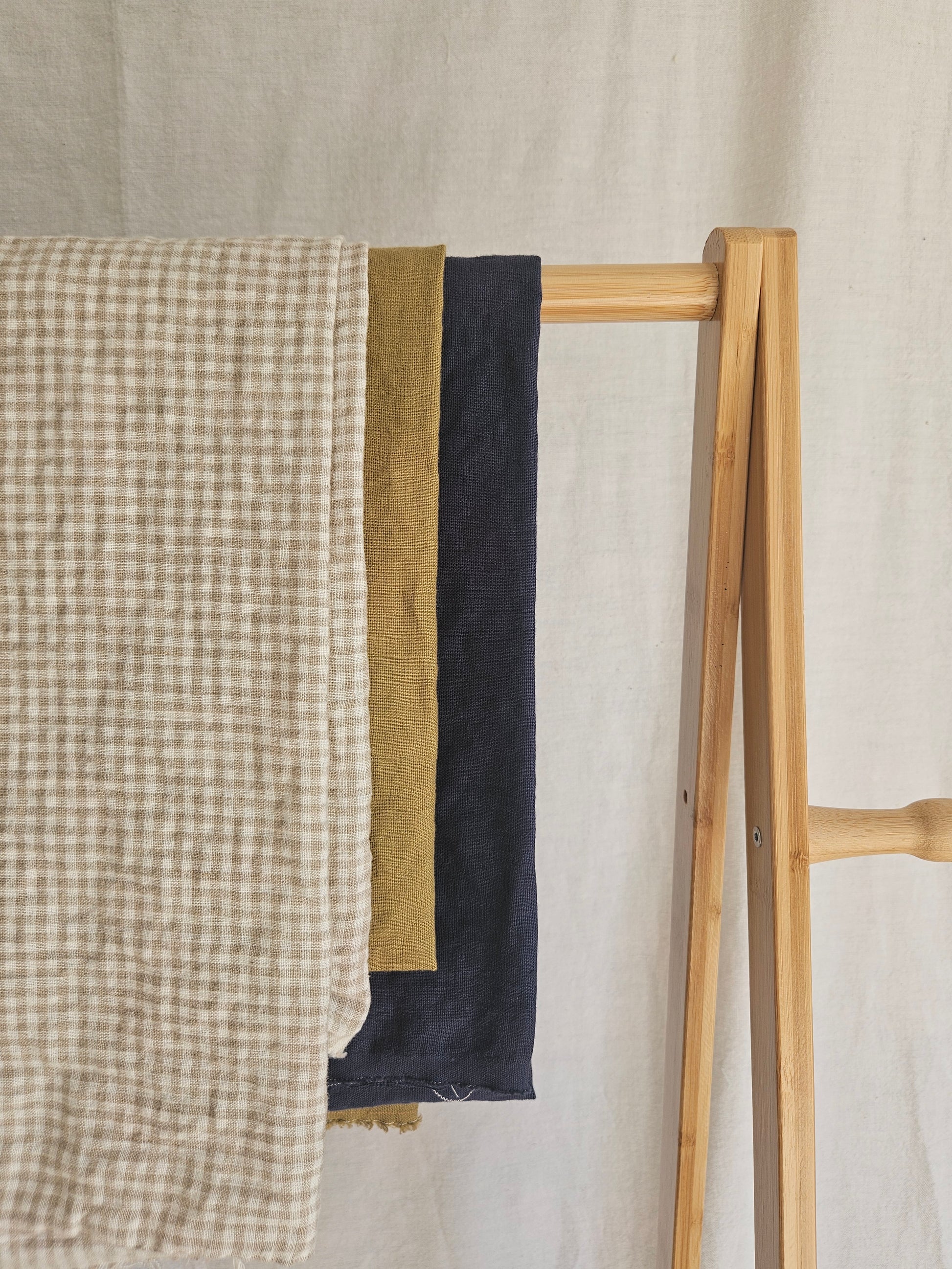 - Yarn dyed using environmentally friendly dyes (Yarn dyeing is the most expensive way to dye linen, but offers better color fastness without affecting the breathability of the linen)