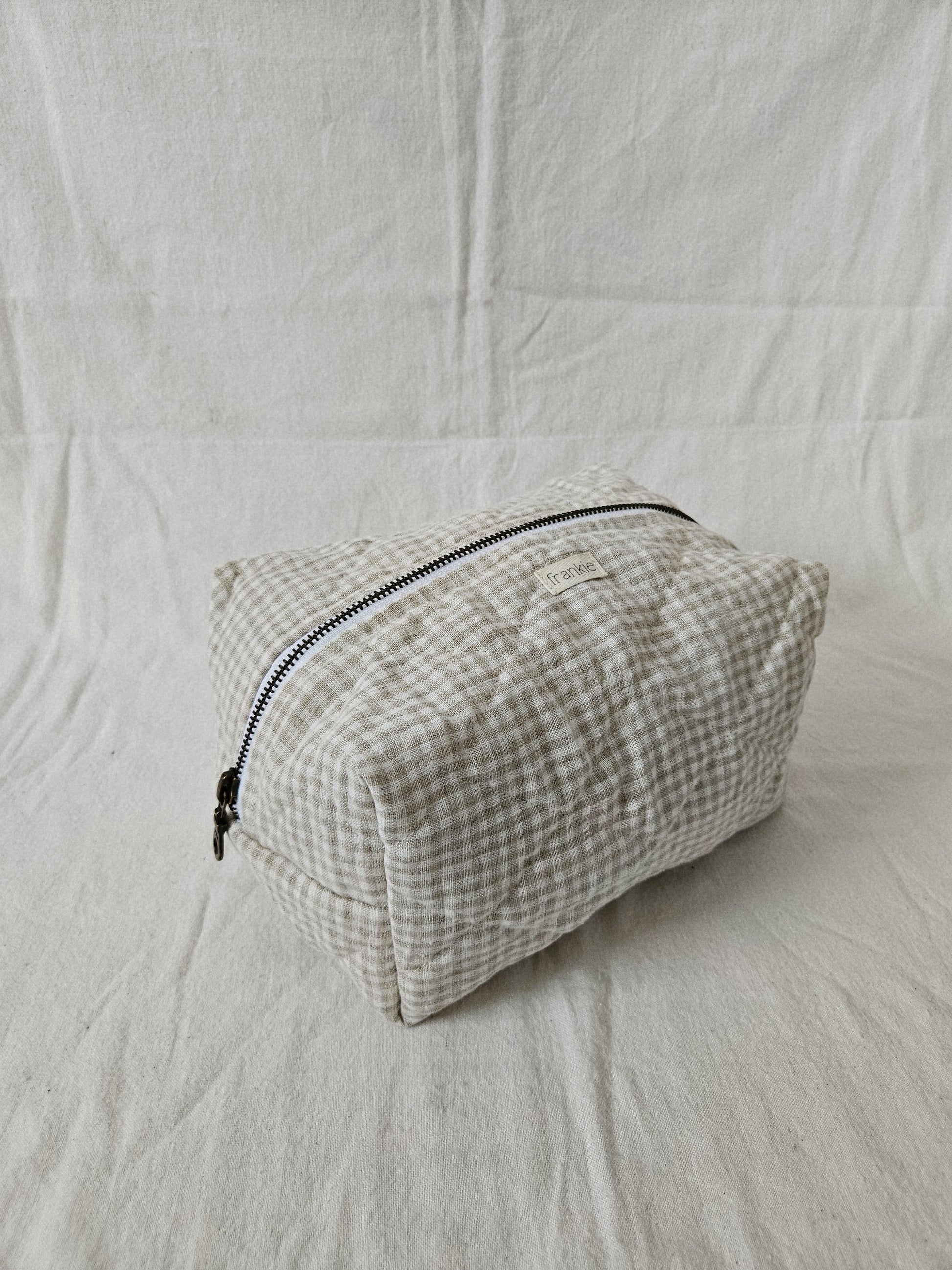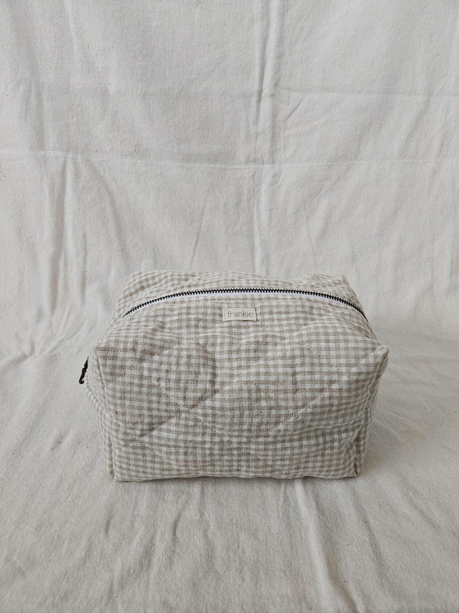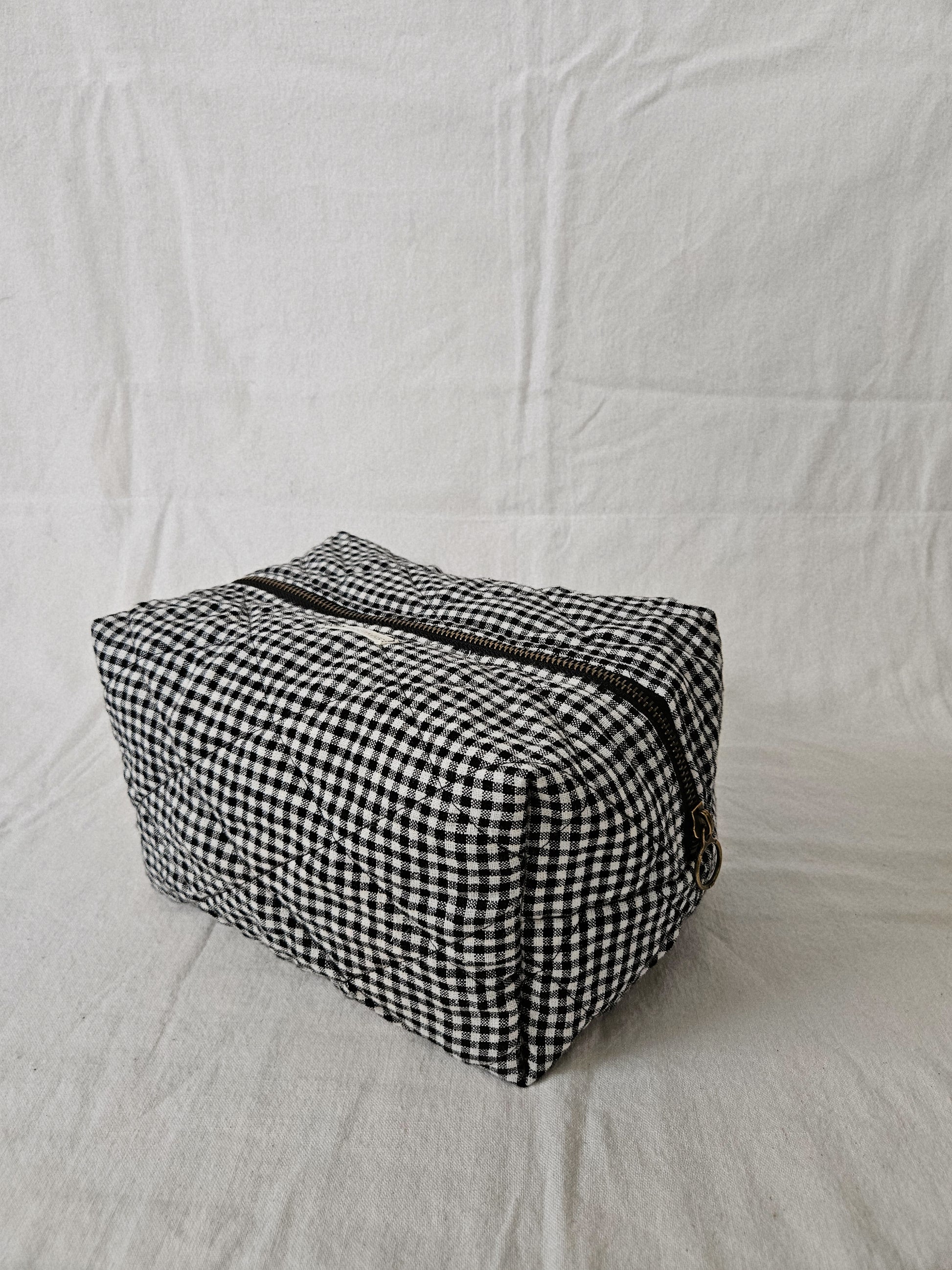 This spacious bag is perfect for holding your makeup, toiletries, and anything else you need to put in a cute pouch! Padded and quilted for a plush feel.